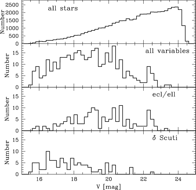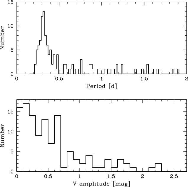 We emphasize that the VIMOS observations lasted only 4 nights, and we were therefore unable to detect variable objects with longer time scales. Long periods are often present in red giants, which are bright and easily detectable.