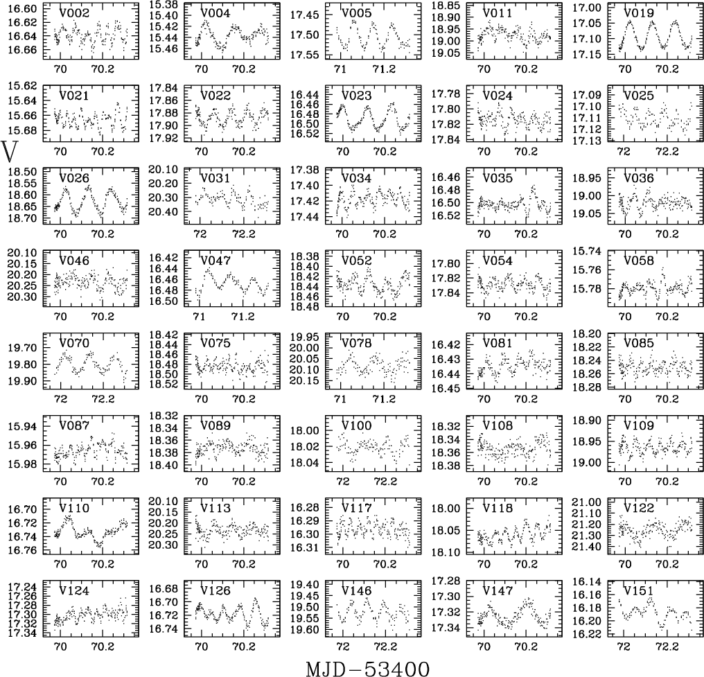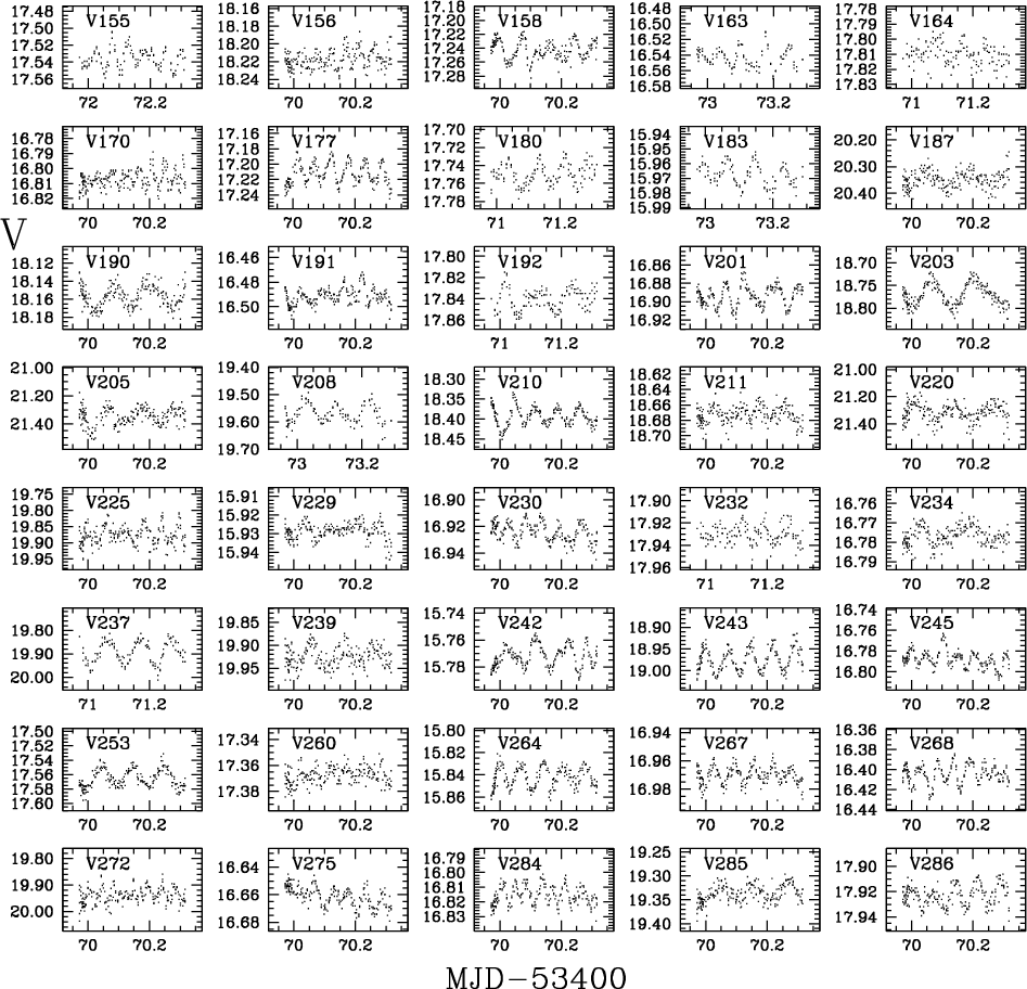 - All photometric data, finding charts, and a large table with equatorial coordinates, periods, magnitudes, and amplitudes of the variables are available via anonymous ftp to ftp.astro.puc.cl/pub/pietruk/VIMOSvar/ or cdsarc.u-strasbg.fr