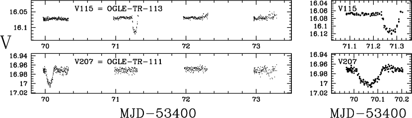 Figure 16: Two planetary transits: V115 (OGLE-TR-113) and V207 (OGLE-TR-111). |