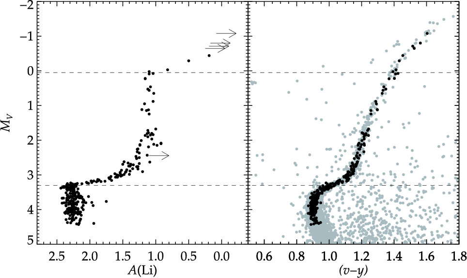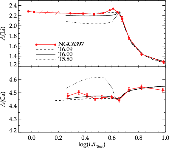 for two SGB stars. By comparing this observed abundance difference of Li (as well as Fe, Ca, Mg, and Ti) to predictions from the stellar-structure models by Richard et al. (2005) and references therein, Korn et al. empirically constrain the efficiency of slow macroscopic motions counteracting atomic diffusion below the convective envelope, which should ultimately provide clues on the origin of turbulence. Note that some slow macroscopic process is also required to reproduce the observed morphologies of globular cluster colour-magnitude diagrams (VandenBerg et al. 2002).