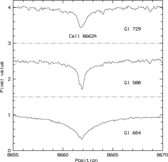 stars. For instance, the EW of the CaII resonance lines are often used as a