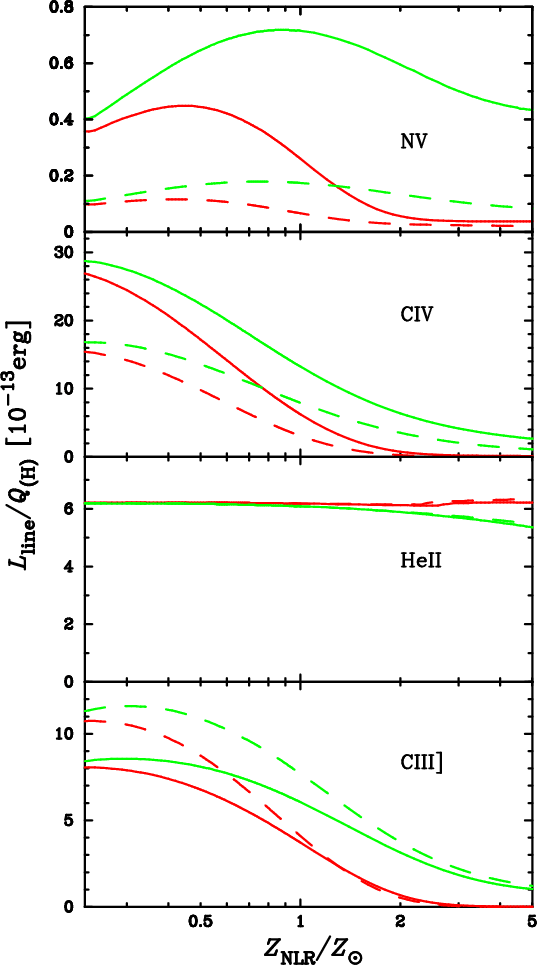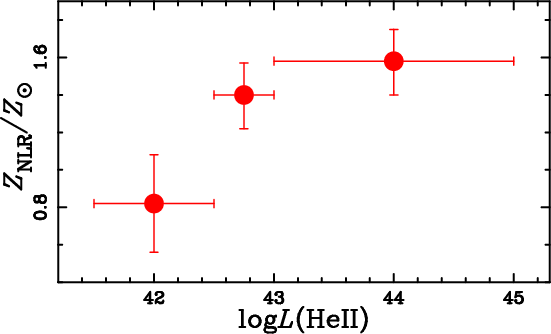 - However, high N V/He II ratios do not always imply high NLR metallicities, but correspond mainly to high ionization parameters.