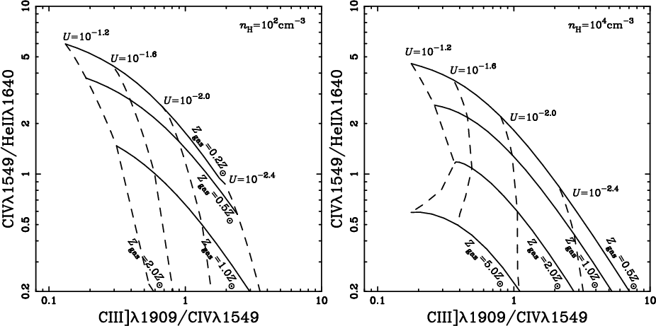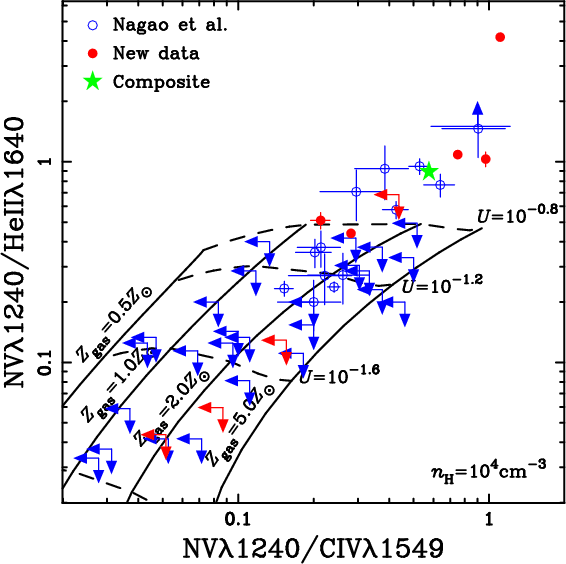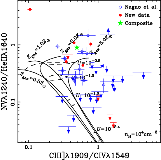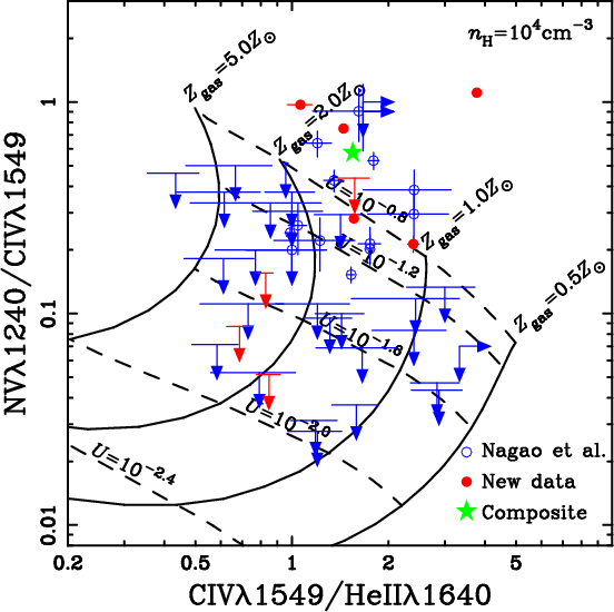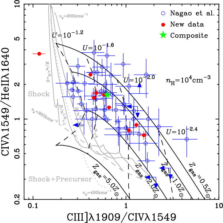 Nagao et al. (2006a) proposed a new metallicity diagnostic diagram that consists of the C IV1549,