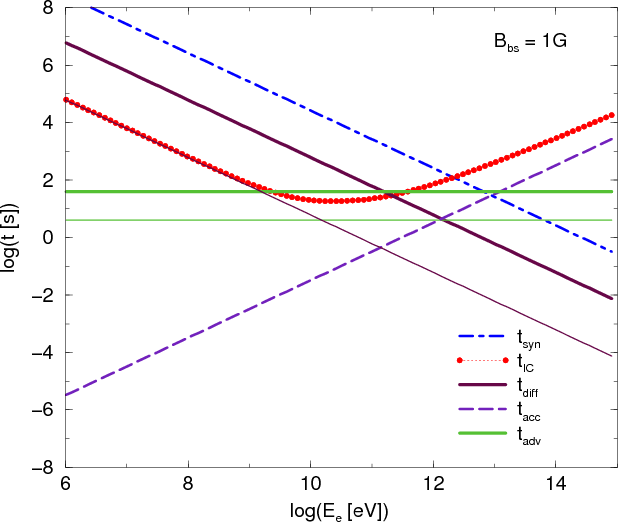 very high energies that dominate the radiation output in cases of relatively weak magnetic fields (e.g.,