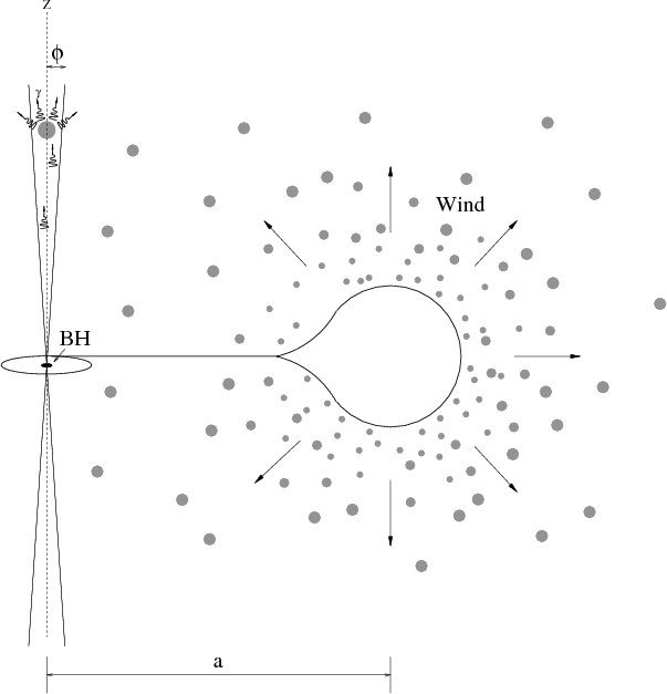 Figure 1: Sketch of a HMMQ with clumpy stellar wind, adapted from Romero et al. (2007). |