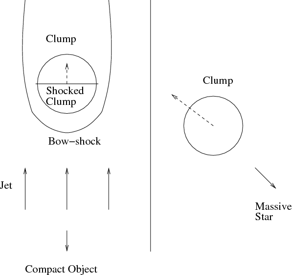 The authors thank an anonymous referee for his/her constructive comments. The authors thank Stan Owocki and Dmitry Khangulyan for many insightful discussions on clumps, jets, and hydrodynamics. A.T.A. thanks the Max Planck Institut fr Kernphysik for its suport and kind hospitality. V.B-R. and G.E.R. acknowledge support by DGI of MEC under grant AYA2007-68034-C03-01, as well as partial support by the European Regional Development Fund (ERDF/FEDER). V.B-R. gratefully acknowledges support from the Alexander von Humboldt Foundation.