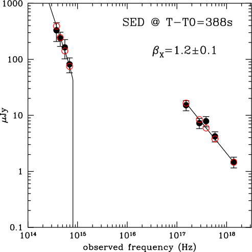 -2. From the analysis of the early afterglow SED, we find that non-negligible host galaxy dust extinction, in addition to the Galactic one, affects the observed flux in the optical regime. The extinction-corrected optical-to-gamma-ray SED during the prompt emission shows a flux density ratio