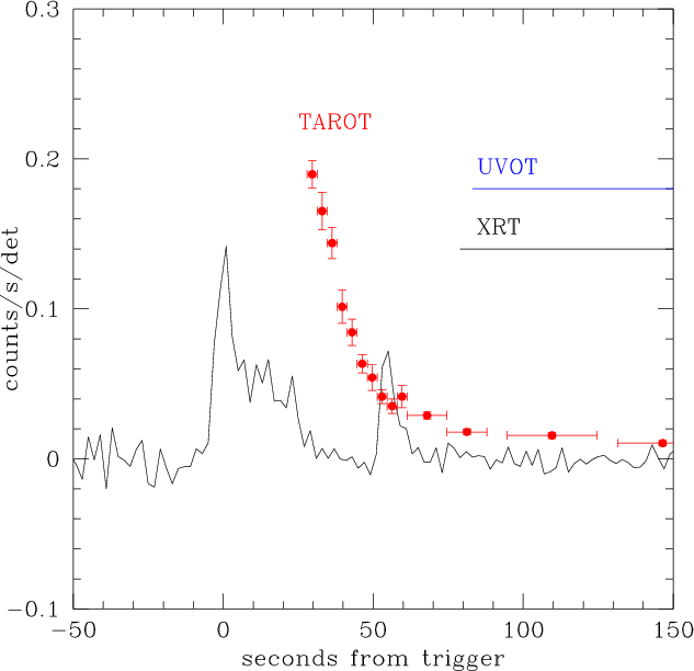 after the trigger, allowing the TAROT and ROTSE III robotic telescopes to observe during prompt emission (Rykoff et al. 2009; Klotz et al. 2006; Yost et al. 2006).