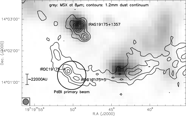 The two sources IRDC 19175-4 and IRDC 19175-5 with a projected