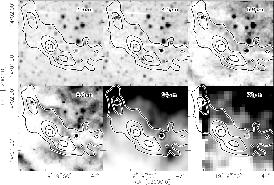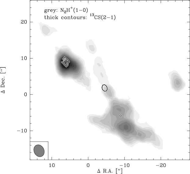 Thanks a lot to Helmut Dannerbauer and Roy van Boekel for helping with the Spitzer data. Furthermore, we like to thank C. de Vries for providing the N2H+ column density calculation routine. In addition, we appreciated a lot the referee's comments improving the paper. H.B. acknowledges financial support by the Emmy-Noether-Program of the Deutsche Forschungsgemeinschaft (DFG, grant BE2578).