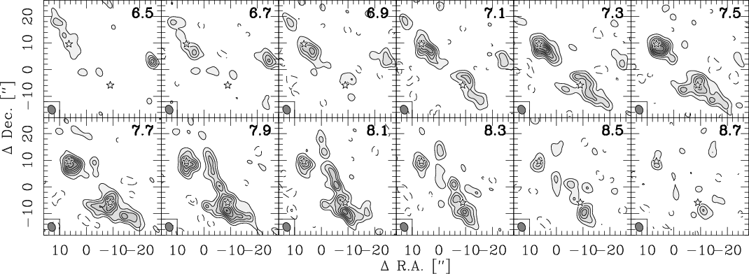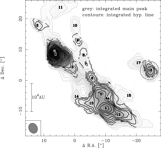 emission (Beuther et al. 2002), and the grey-scale presents the mid-