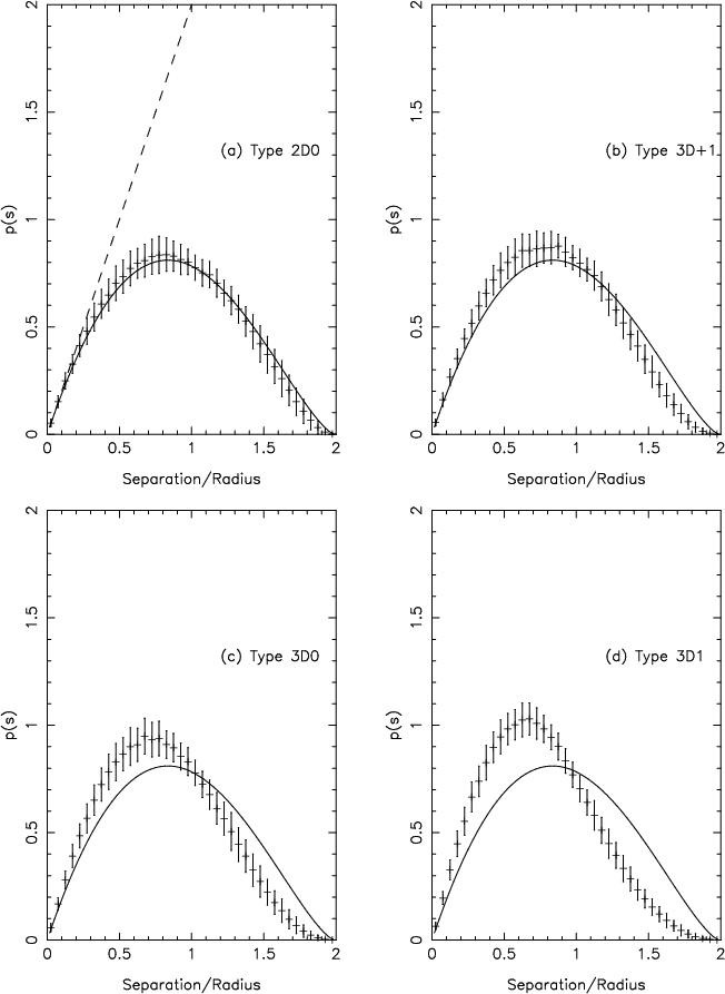 type (2D0) is a circular cluster (i.e. two-dimensional disc) with statistically uniform surface density. This is the distribution expected from circular samples of randomly distributed data points. The second type (3D