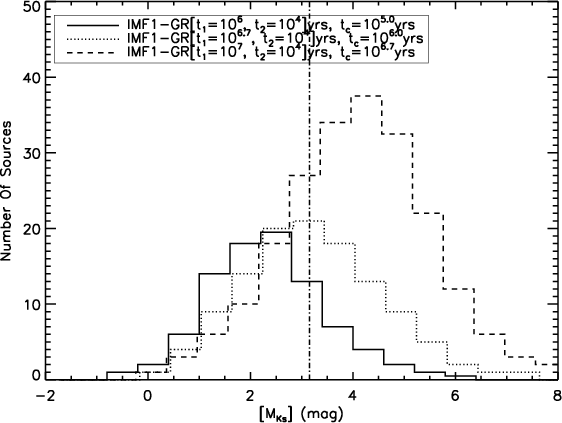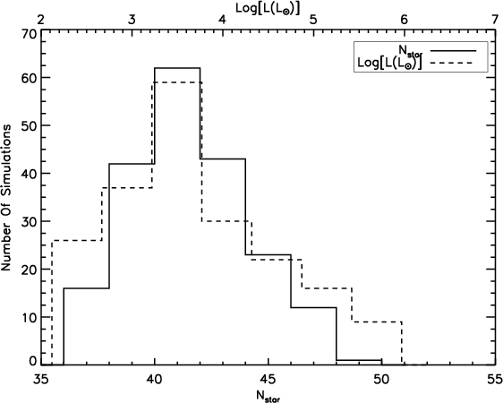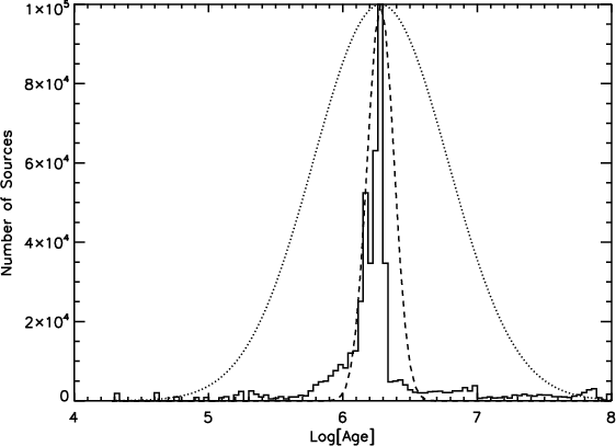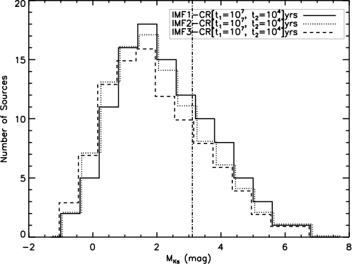 Conclusions. Our results are consistent with star formation having occurred continuously over a period of time longer than the typical crossing time.