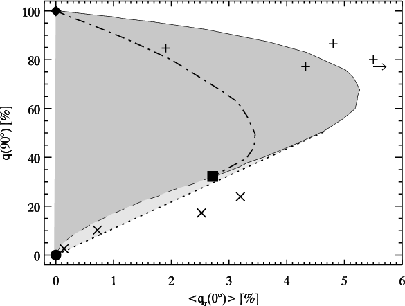 % (e.g. Leinert et al. 1981; Levasseur-Regourd et al. 1996), while a polarization close to 100% is inferred for single scattering of haze