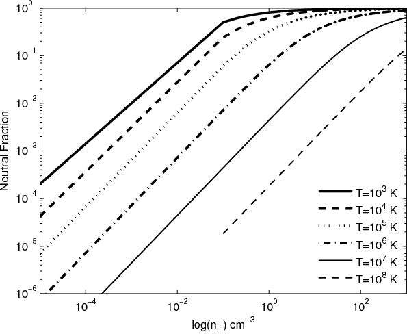 neutral fraction of hydrogen decreases rapidly because of the transition