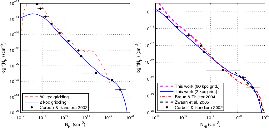 Results. The simulated H I distribution robustly describes the full column density range between