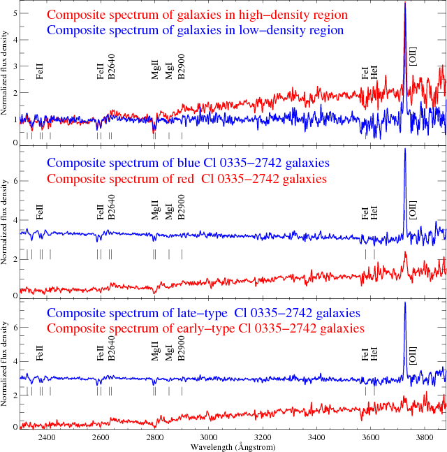 galaxies. Wavelength in Ångstrom on the horizontal axis and