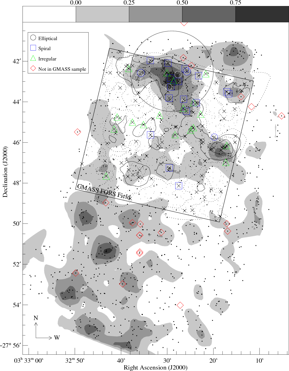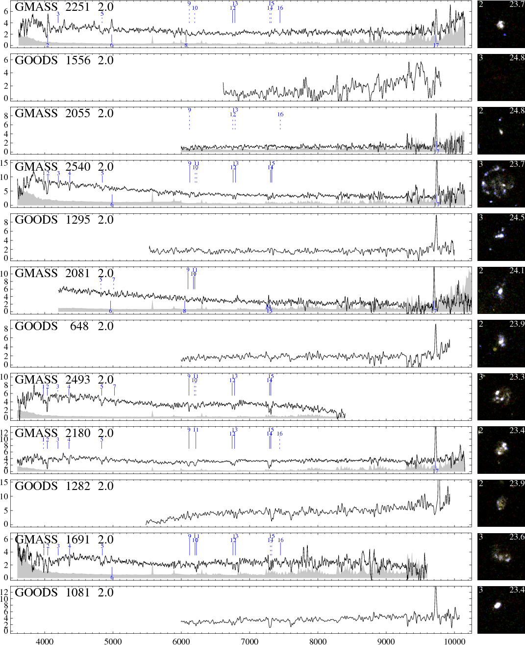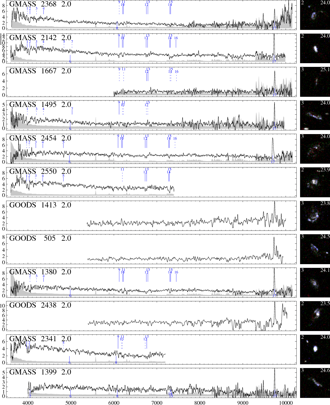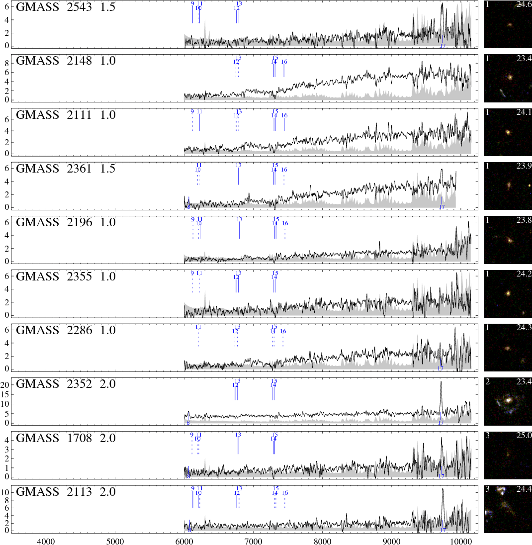 a factor two. The origin of the spectra is plotted: GMASS (Kurk