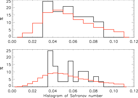 A particularly intriguing observation made by Hansen & Barman (2007) from an examination of the 18 first transiting planets is the apparent grouping of objects in two categories based on their Safronov number.