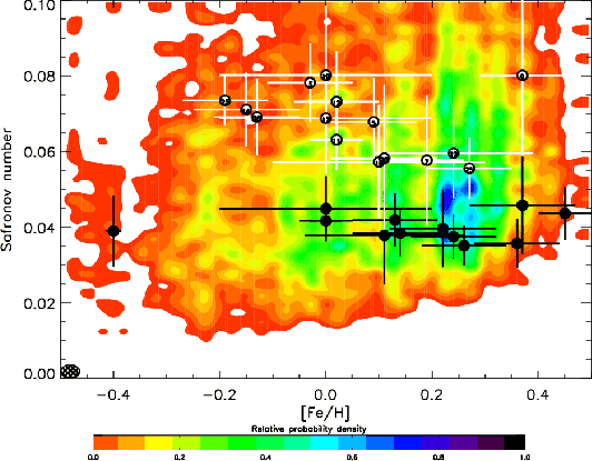 On the other hand, a similar calculation done by splitting the RV list in a low-metallicity part (