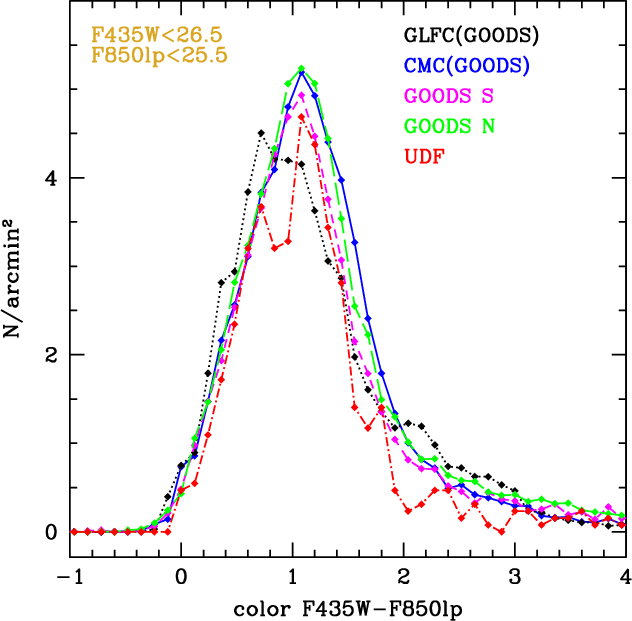 m using a comparison with the GOODS and UDF surveys. The CMC