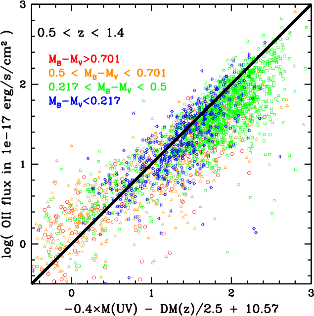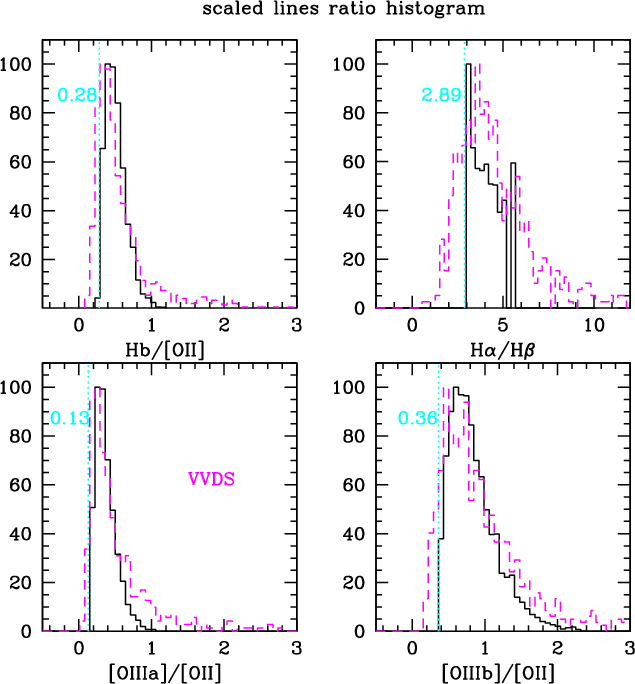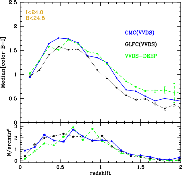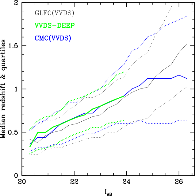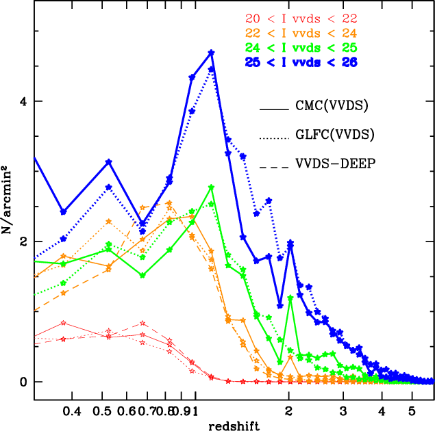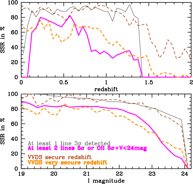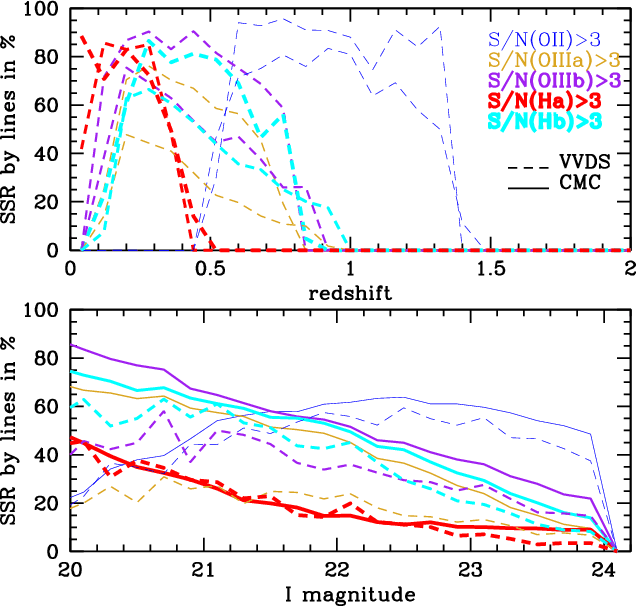 Moreover we have also used the CMC and the emission line model to compare the spectroscopic success rate observed by the VVDS and the one we can predict based on the CMC line fluxes. In general we obtain a good agreement between observed success rates and the CMC predictions.