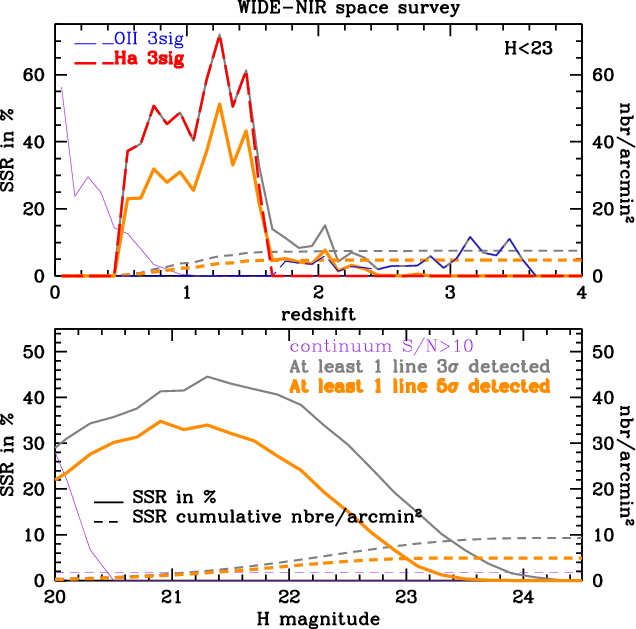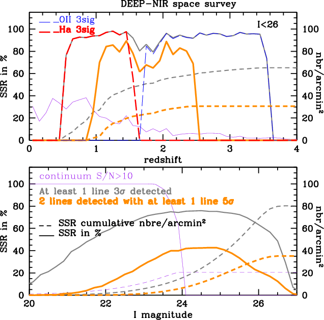 yield in terms of redshift measurements for 2 type of surveys: (i) a WIDE survey motivated by measuringBAO, and (ii) a deep survey motivated to calibrate photometric redshifts. We found that the