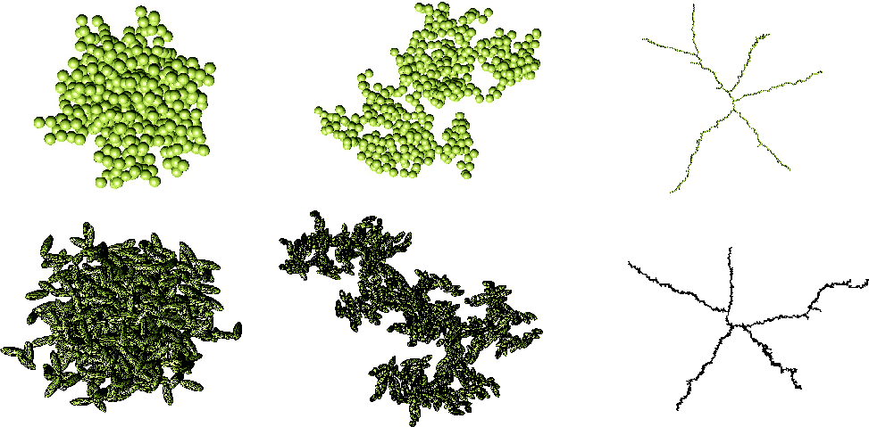 Although limited to the case of only two different monomer shapes, we believed this choice was sufficient to provide hints on the influence of the monomer shape on the overall morphology of the final particles since the ellipsoidal shape chosen is extremely elongated and different from a sphere, and can be indeed considered as an extreme case.