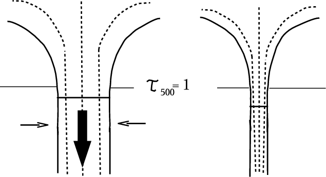 Convective collapse scenario according to Parker (1978). On the left the magnetic flux tube is sitting in the intergranular lane and is strong enough to reduce