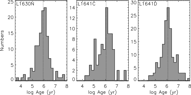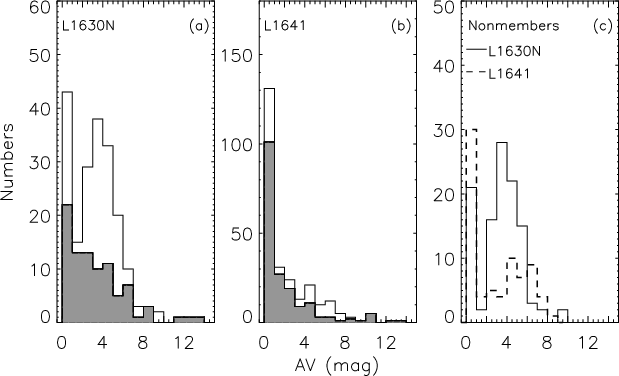 limiting magnitudes of 16.2, 15.3, and 14.6 mag, respectively. The L1630N and L1641 clouds were imaged using the Spitzer Space Telescope IRAC (Fazio et al. 2004) and MIPS (Rieke et al. 2004) cameras.