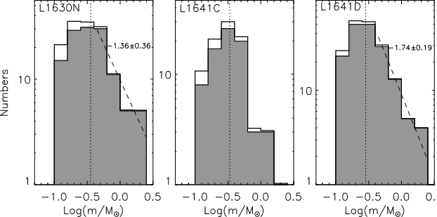 - In a fit over the whole mass regime in which only stars from the four mentioned star forming regions were included, we find