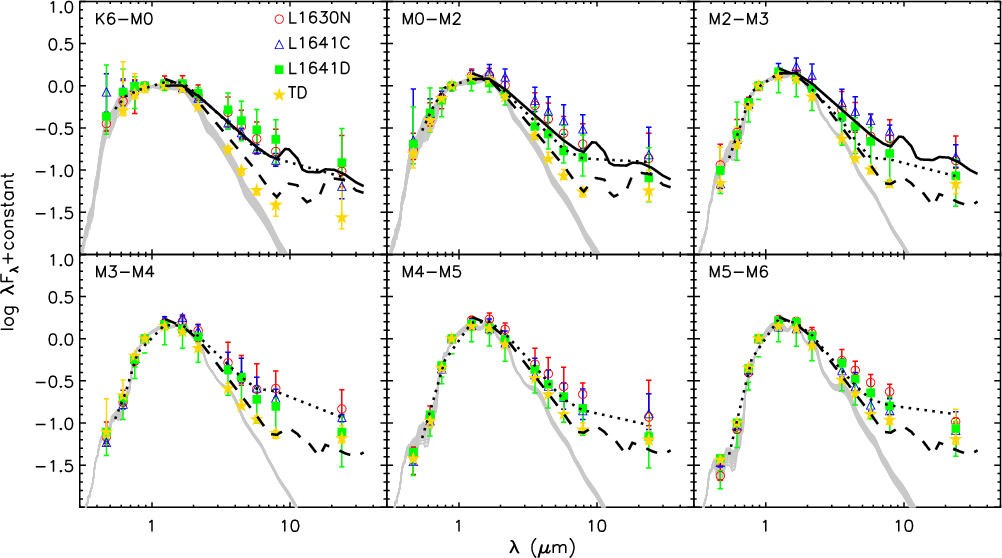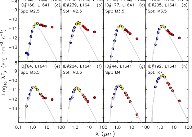 - The MIPS [24] mag for YSOs #24, 81, 125, 126 in L1630N were adopted from Flaherty & Muzerolle (2008).