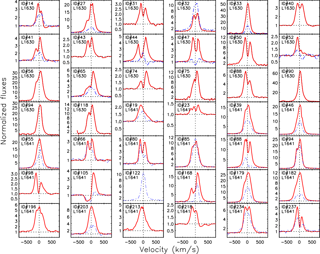 Table 11: The equivalent widths of emission lines on the optical spectra for YSOs in L1641.