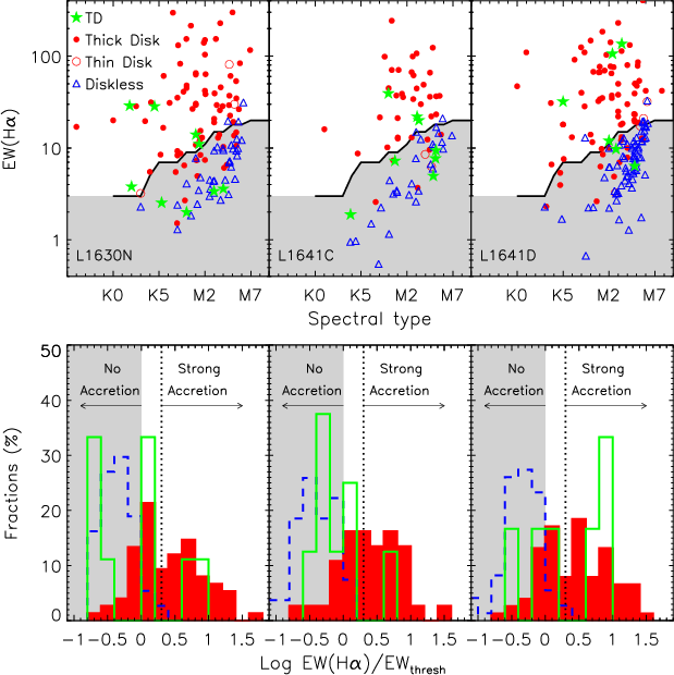 is included. The fraction of stars with transition disks that show significant accretion activity is relatively low compared to stars with still optically thick disks (26
