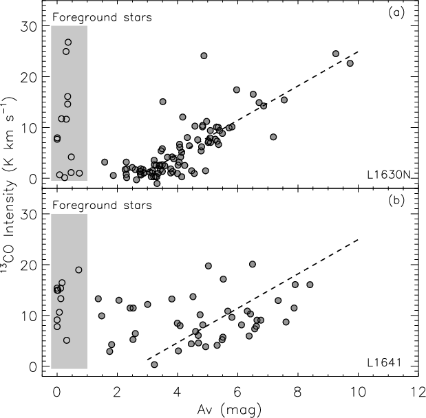 0.2 pc in L1641 but not in L1630. We propose refined H