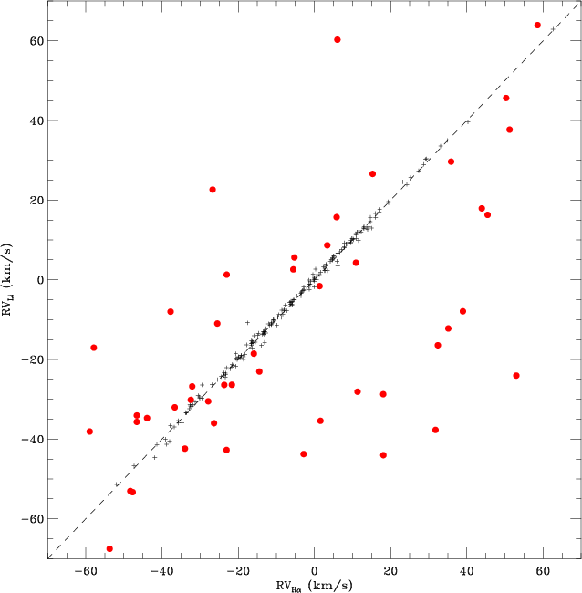 and Li I regions, to gather spectroscopically unresolved binaries. For stars appearing as singles, i.e. with single-lined spectra without any detectable RV variation on a timescale of a few days, we averaged the two RV values. On the other hand, significant RV differences between the H