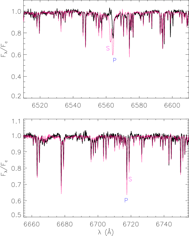 wings. Spectra were finally corrected for the Earth velocity and reduced to the heliocentric rest frame.