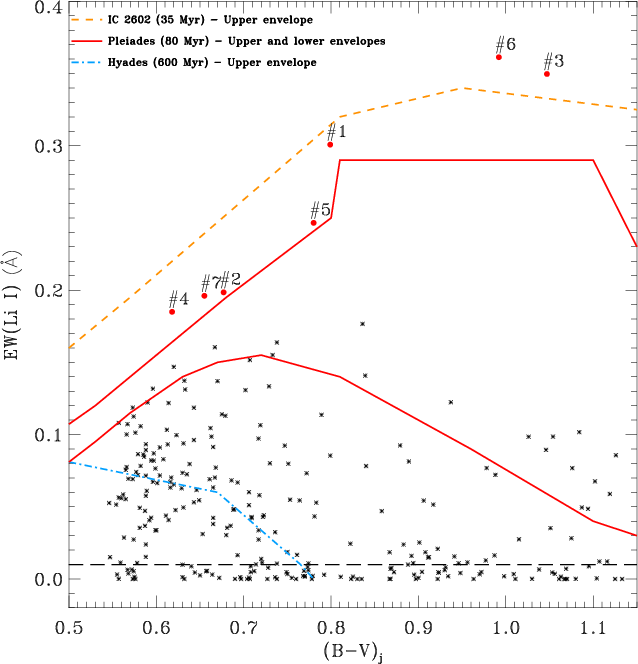 range for which the lithium depletion behaviour is more effective. Indeed, it is well known that the strength of the Li I
