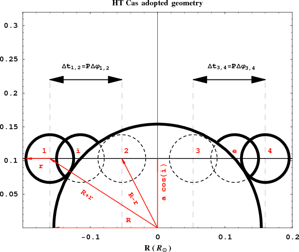 Figure 6: The adopted geometry for the eclipse description in HT Cas (see text for details). |