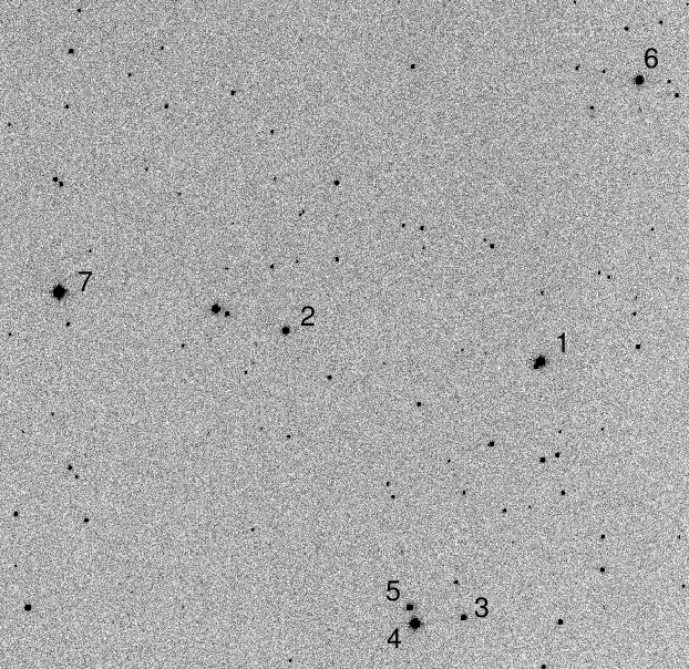 Figure 1: Finding chart for V405 And from a V-band frame of the 1m RCC telescope. Numbering is the same as in Chevalier & Ilovaisky (1997). |