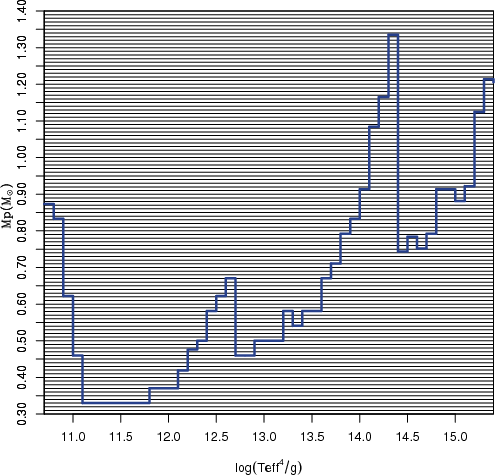 and g are the most probable mass, effective temperature, and gravity. This relation is used to study the masses of some observed hot subdwarfs.