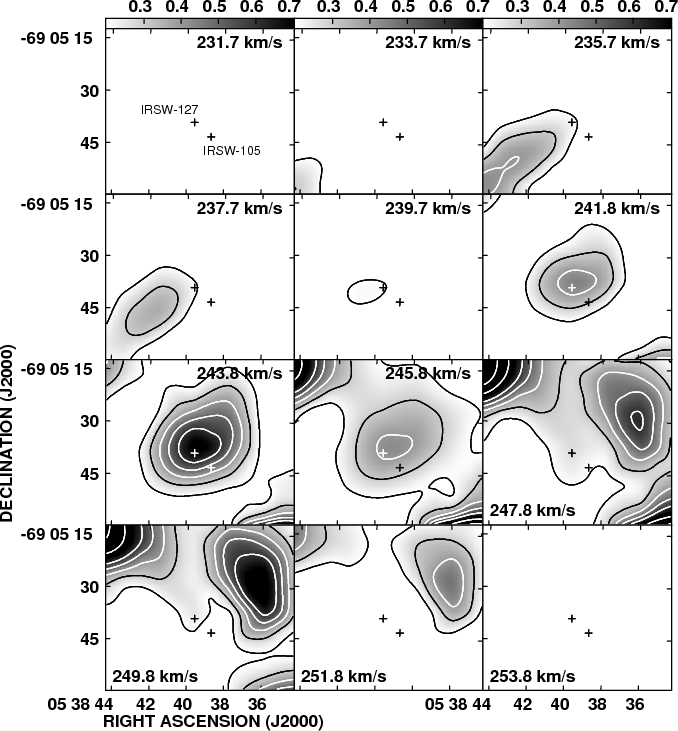 The observations covered the region between the two strongest CO molecular clouds mapped in 30 Doradus