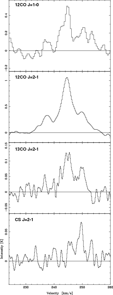 We also obtained 13CO and CS J = 2-1 spectra towards the position of the strongest 12CO J = 2-1 emission