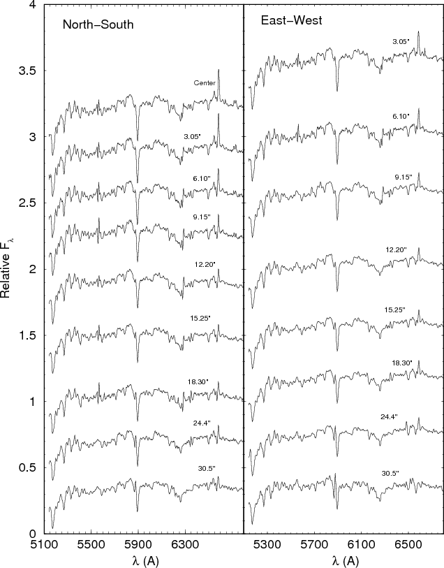 the average seeing; two 2-dimensional spectra were obtained with the same exposition time