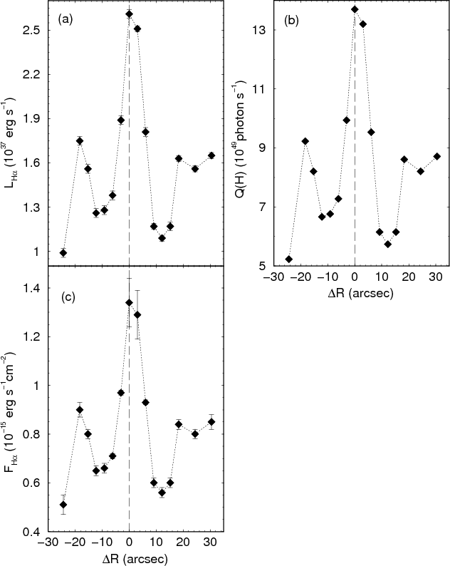 ionised gas emission is more significant towards the southwest (Ferrari et al. 1999).