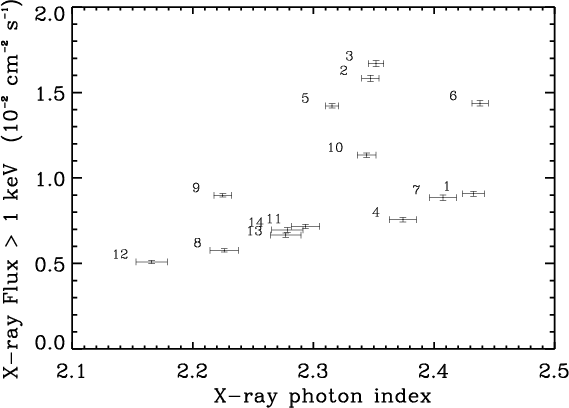 A correlation between the X-ray flux and the photon index is also observed. Those results were obtained using