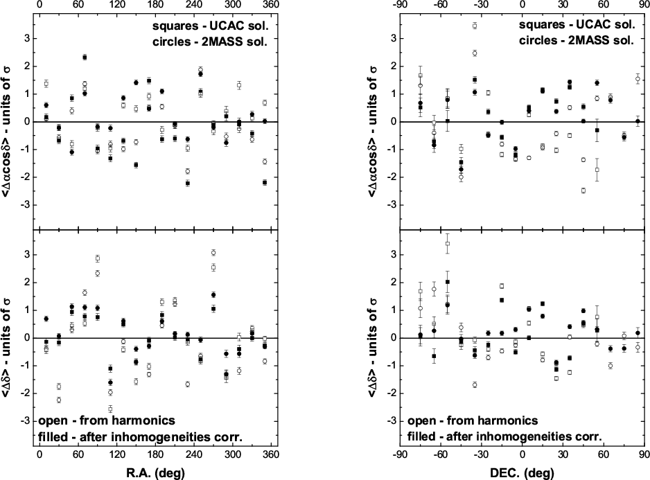Empty boxes are found only in the Galactic plane towards the southern hemisphere. Figure 20 presents a vector map of the offsets versus the VLBI positions, in bins of side 30