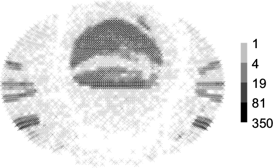 The LQRF contains 100 165 sources. On average, every source has a neighbor within 10 arcmin. Figure 19 shows the sky distribution counts within squares of 10.