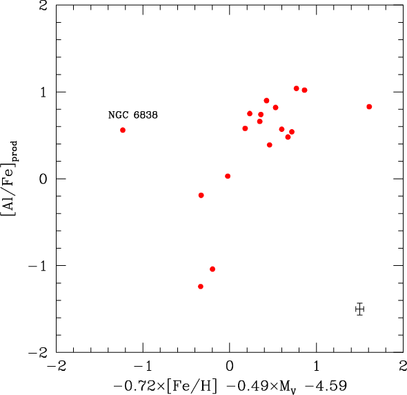 - Finally, we found that our dilution model satisfactorily explains most of the clusters. However, the spread in Al abundances at a given Na abundance found in a few clusters (the clearer example being NGC 6254 = M 10) shows that in some cases there was more than a single pool of gas from which second generation stars formed. We argue that a careful and extensive study of the Na-Al relation may provide crucial information on the nature of the polluters.