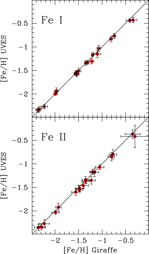 - to provide accurate measurements of equivalent widths (EWs) from high-resolution spectra to build a reference system on which to check the EWs measured on lower resolution GIRAFFE spectra for each cluster;
